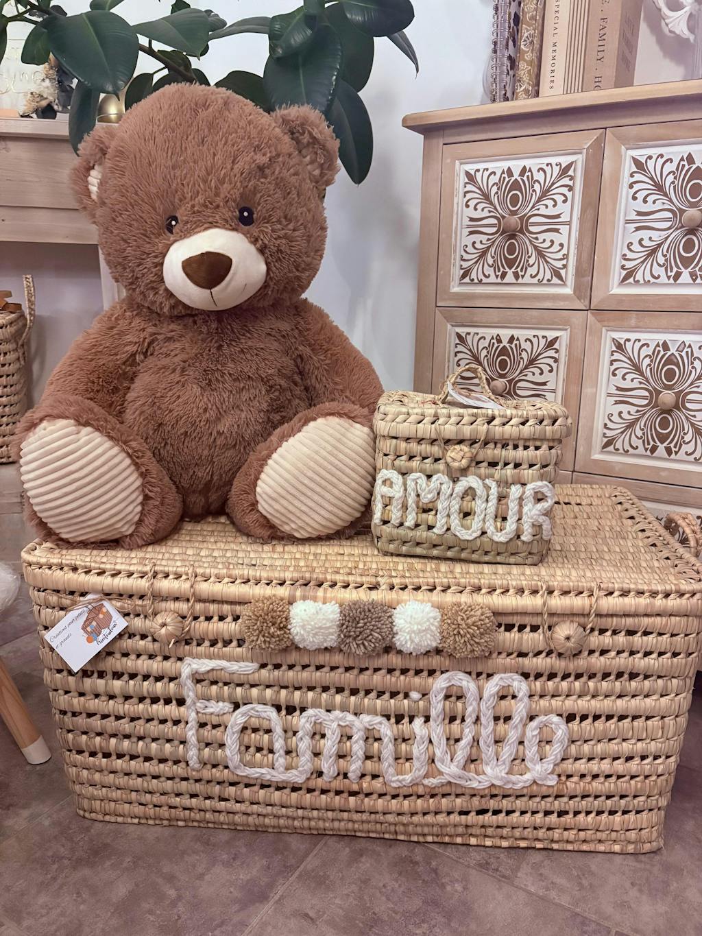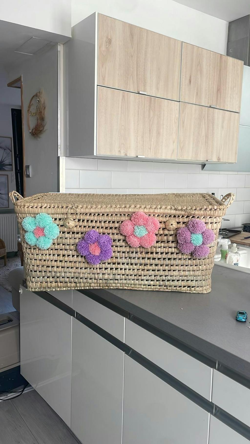 Malle réalisée à la main en feuilles de palmier séchées , au Maroc.